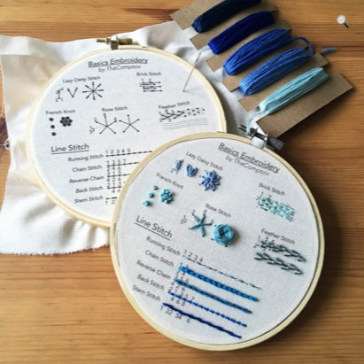 This kit "Basic stitches" is part of a collection of learning projects to discover embroidery. You are going to learn how to make ten embroidery stitches. You will find all explanations you need in this booklet.