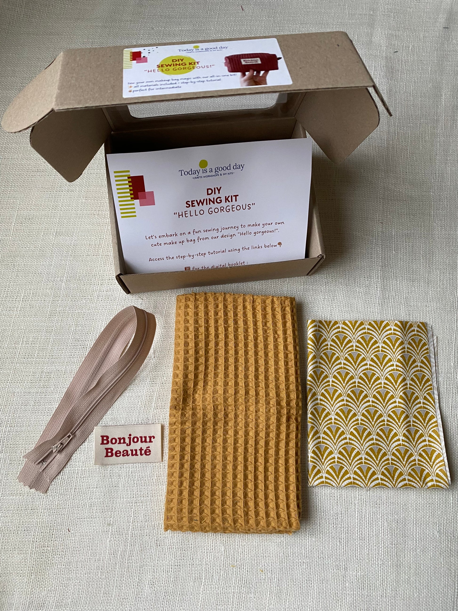 "Hello Gorgeous!" - DIY sewing kit - mustard