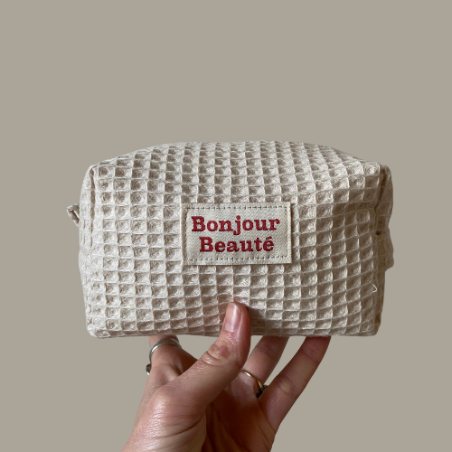 🧵Fabulous fabrics & quality materials: Plush waffle cotton, coated lining, zipper and the “Bonjour Beauté!” Label for that extra use of glam.
