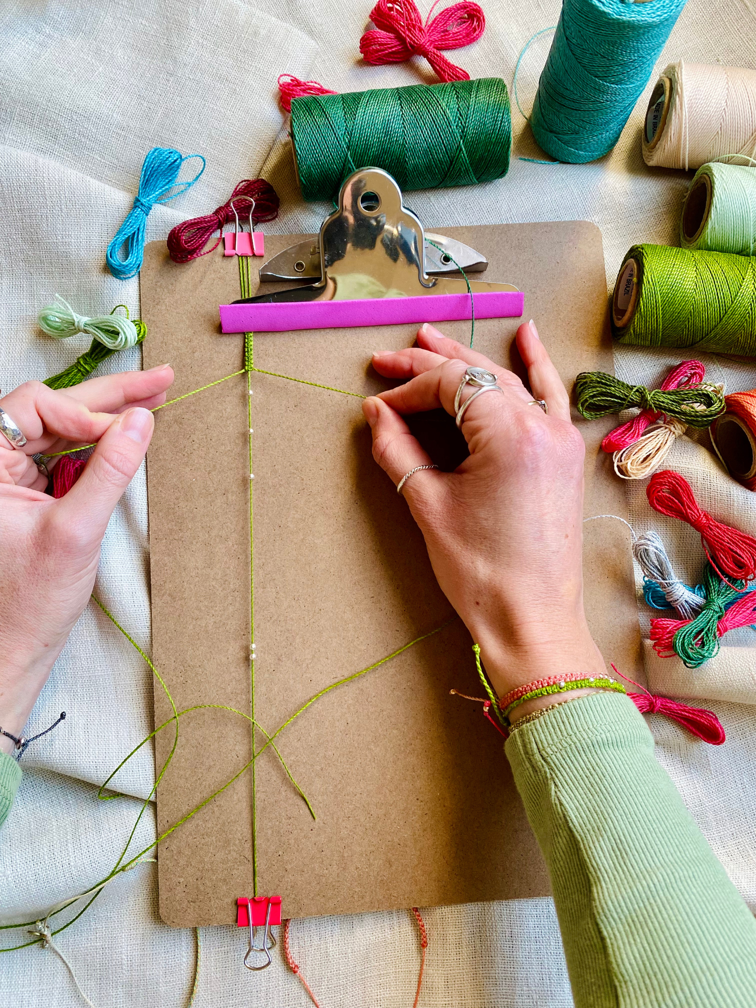 This specially designed clipboard is your ultimate worksurface for your macrame bracelet. Safe for the ropes, sturdy and portable wherever you feel like crafting.
